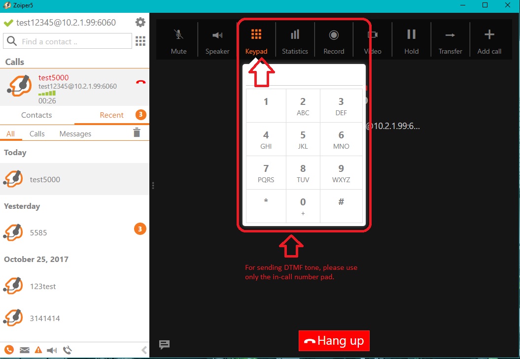 Zoiper5 comes with two number pads, one for dialling (right above your contact list and one in-call for sending DTMF tone. You need to use the one that is located on the in-call menu, as on the example picture below: