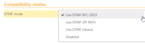 Please note that the use of SIP INBAND is highly discouraged as it will not work (reliably) with popular voice compression algorithms (codecs other than g711, ulaw or alaw). SIP INBAND should not be used unless RFC2833 and SIP INFO are not supported by the PBX or VoIP provider.