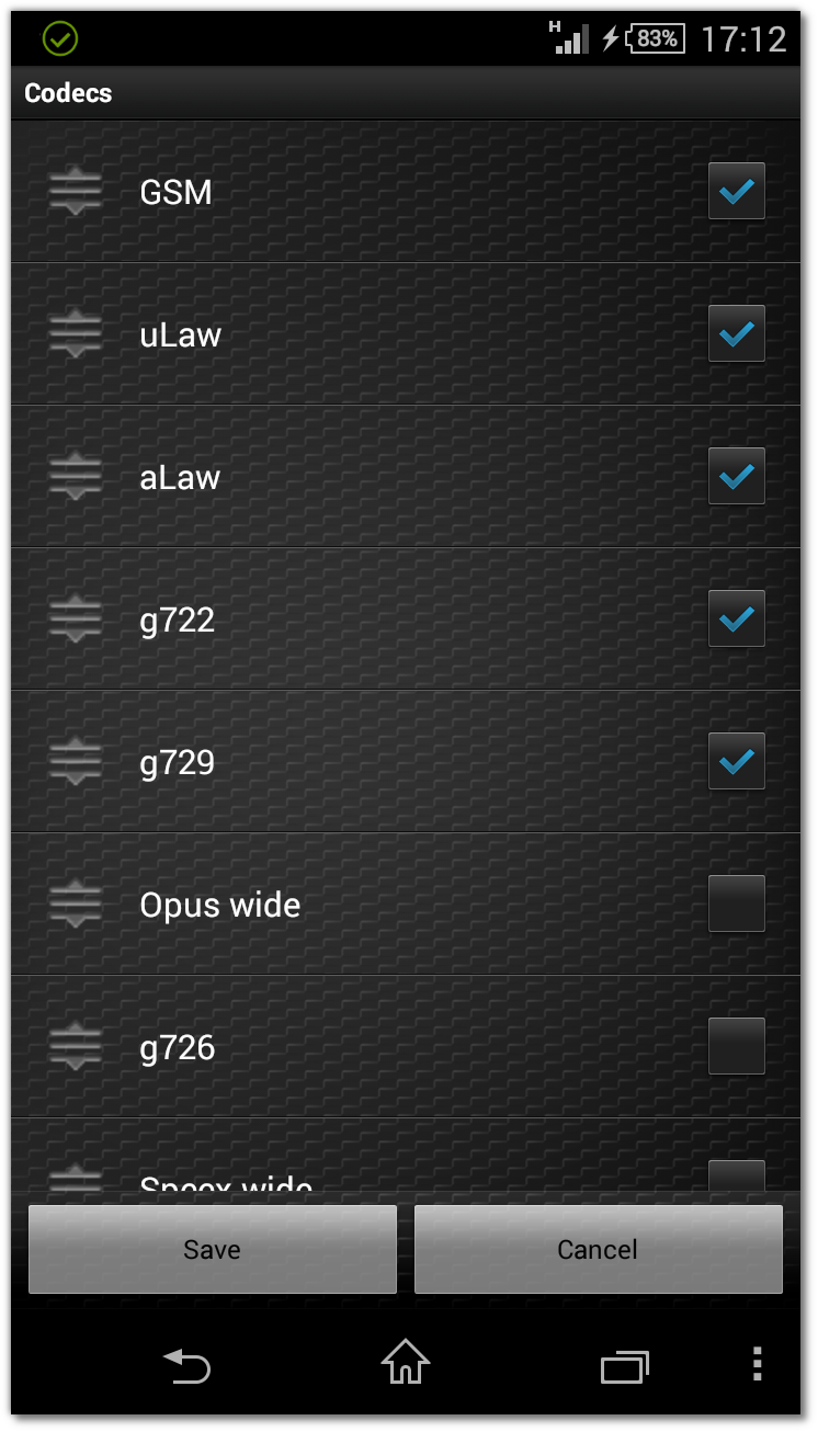Zoiper for Android 1 (legacy product) supports the following audio codecs:*