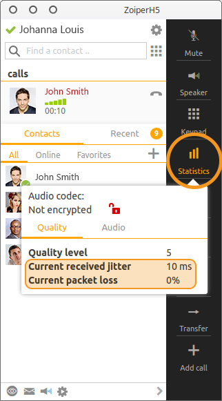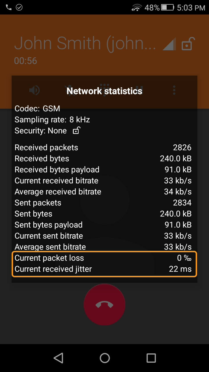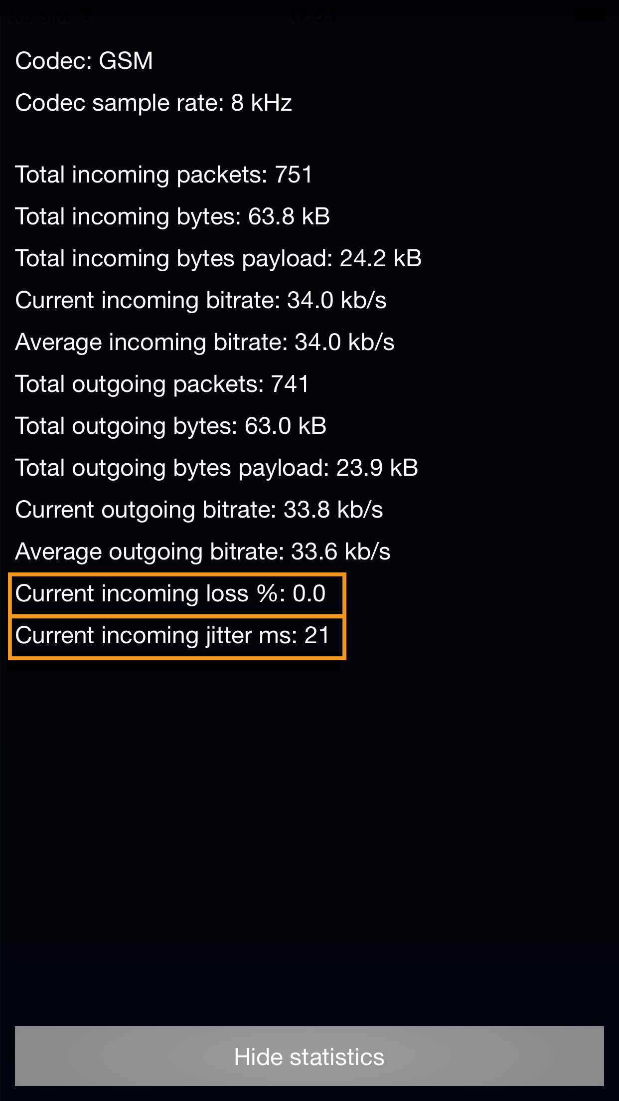 The easiest way to see if you are affected by poor network quality is by checking the RTCP statistics during an active call.