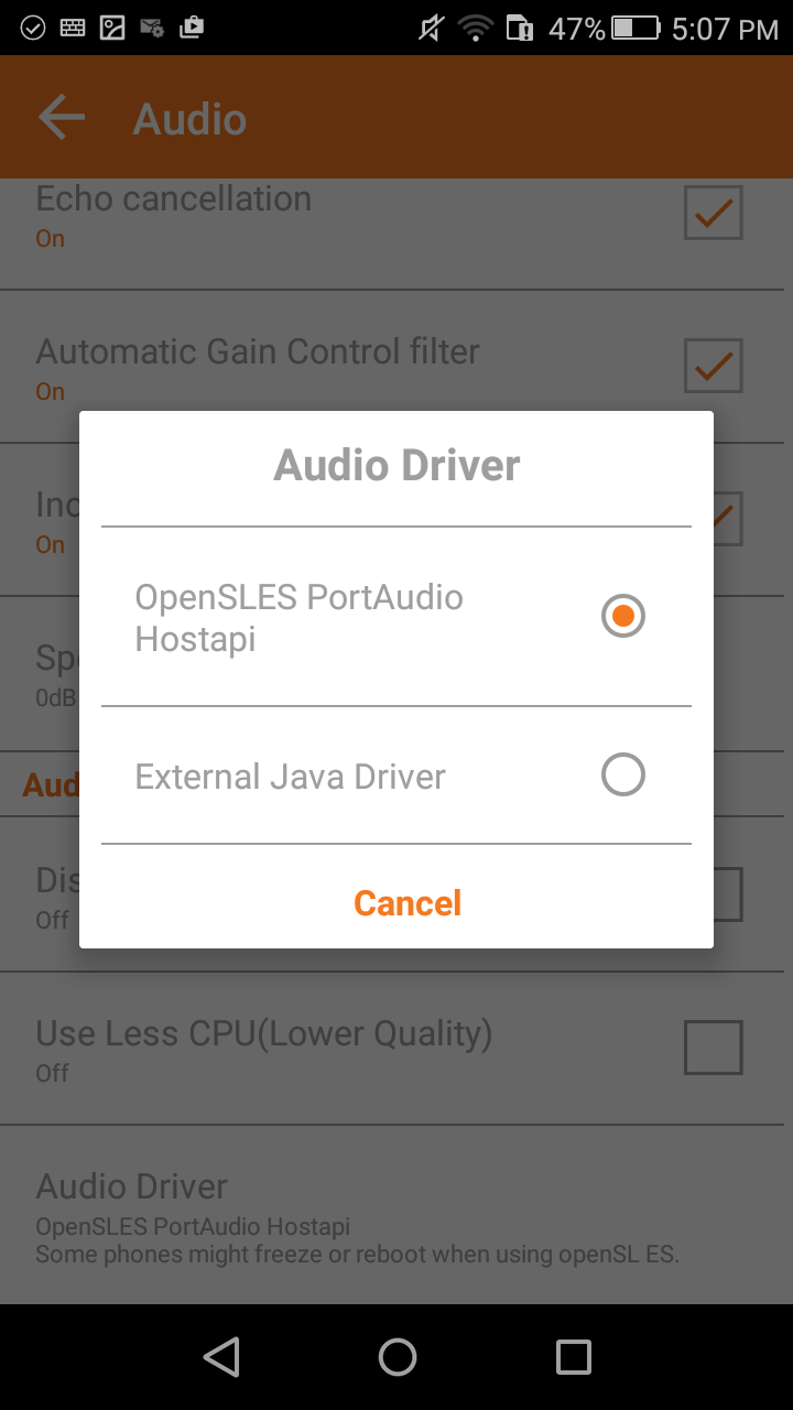If you have a really slow phone, consider enabling the "Use Less CPU" in Settings -> Audio: