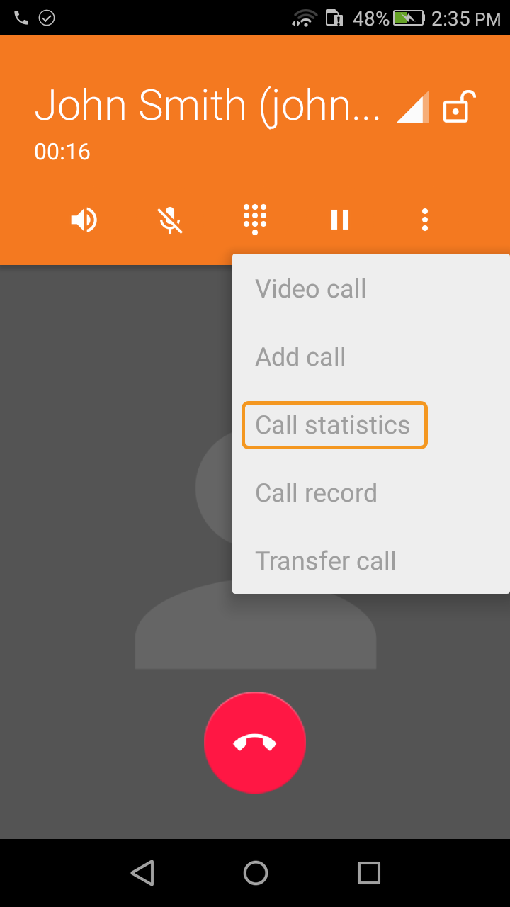On Android you can do so by making a call -> click on the more button and then click on the call statistics.