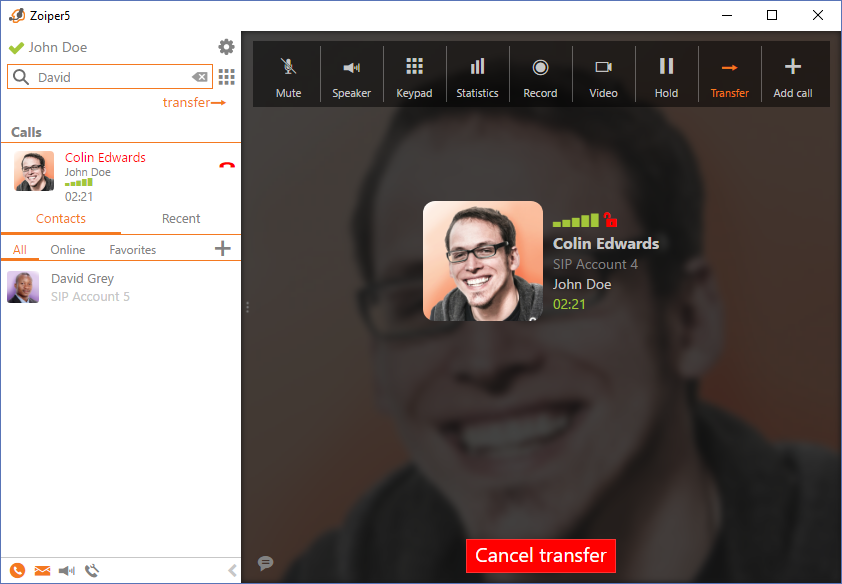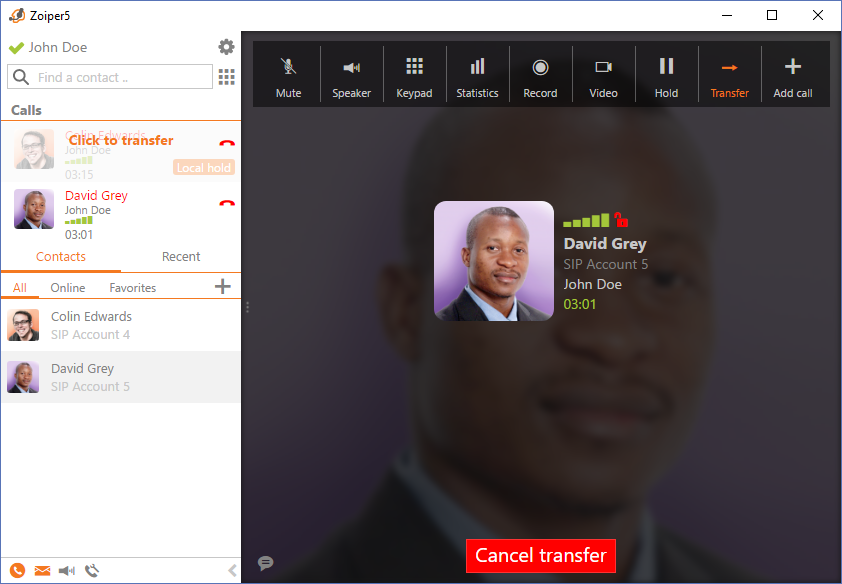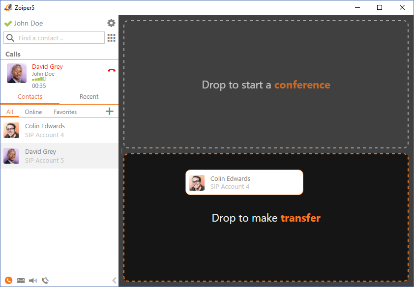 Zoiper 5 gives you even more flexibility than ever before. Now you can drag and drop a contact from your Contacts list to make a transfer.