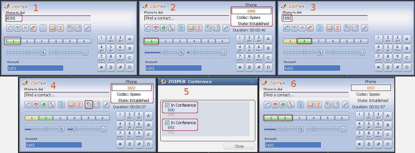 To make a call conference with Zoiper WEB you would need to follow these steps: