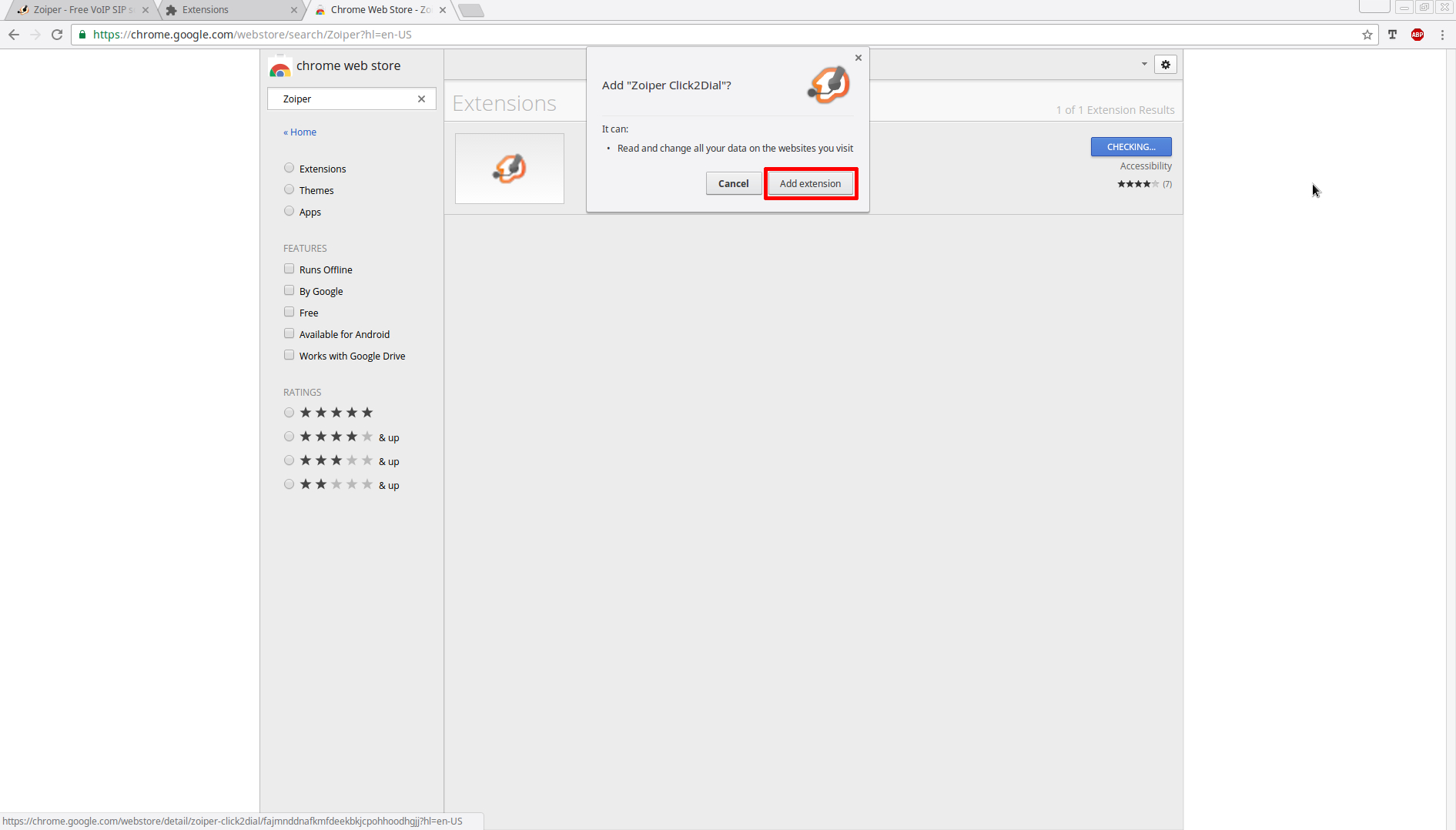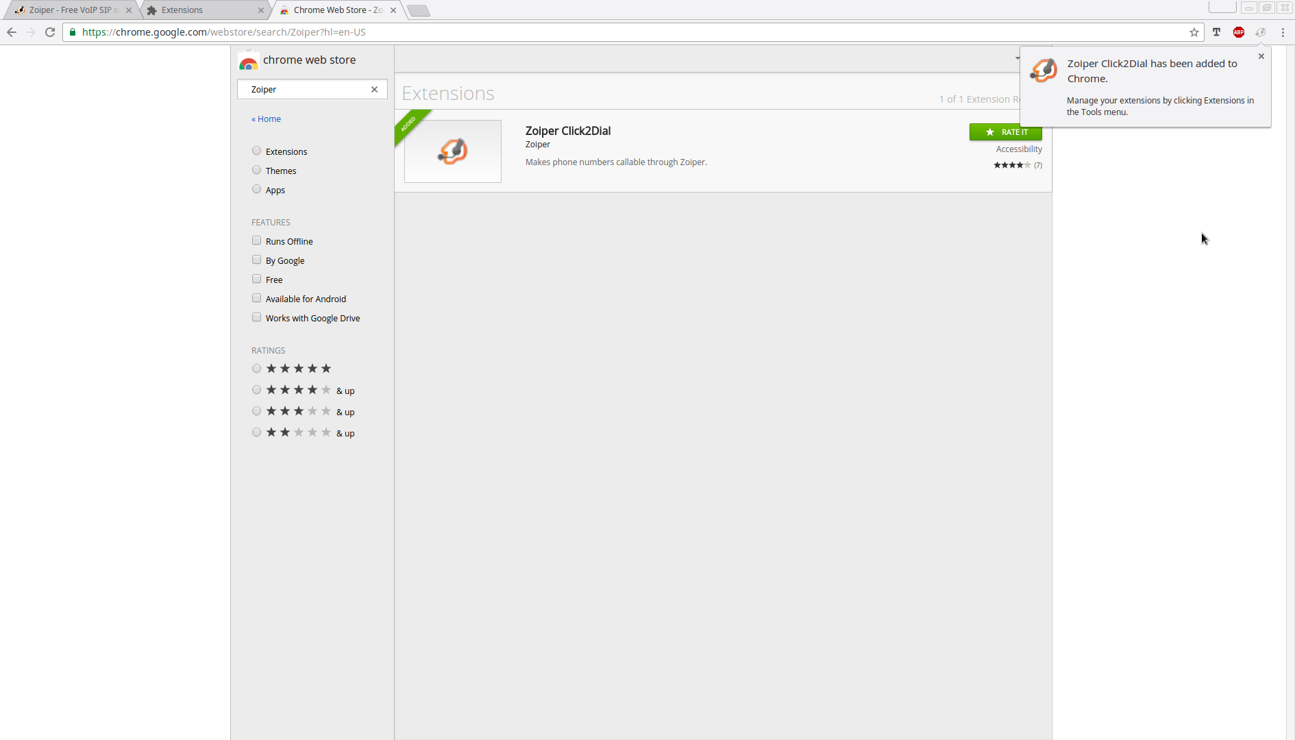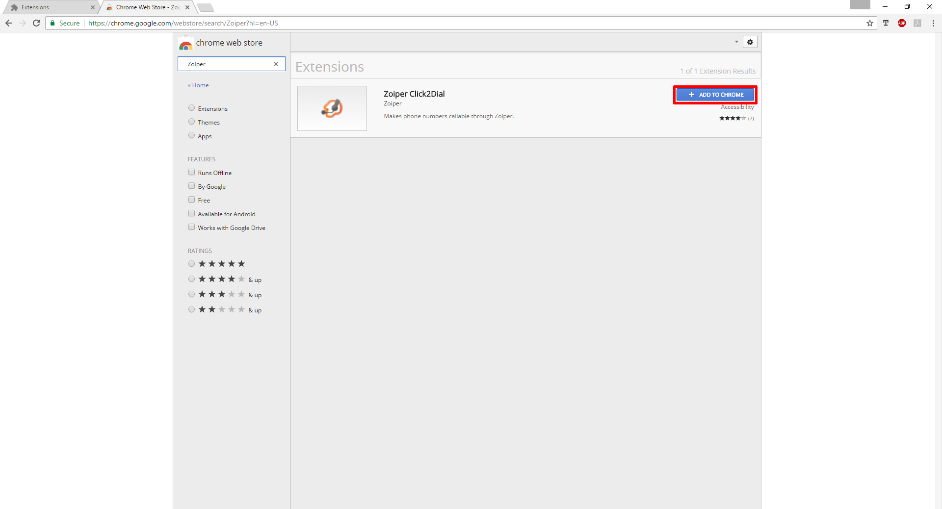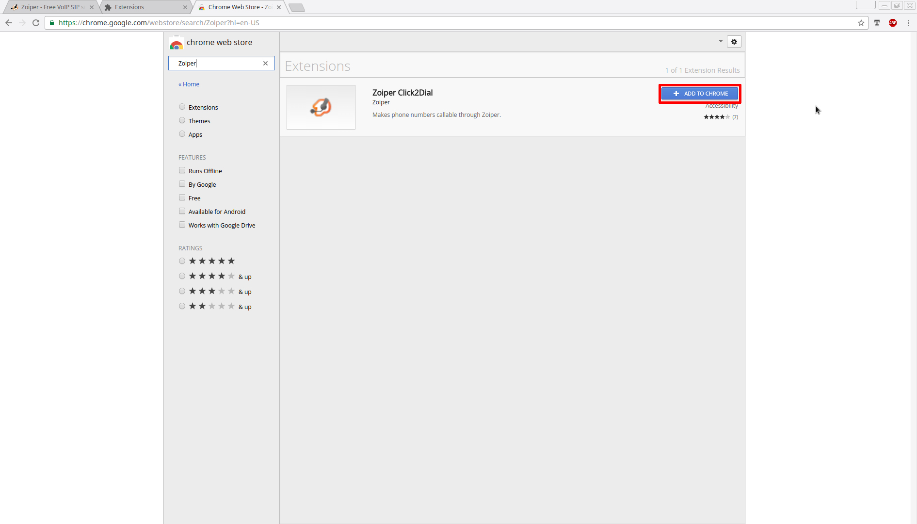 For your convenience, you can visit the Google Chrome extension store and search for Zoiper or directly install the Zoiper Click 2 Dial extension.
