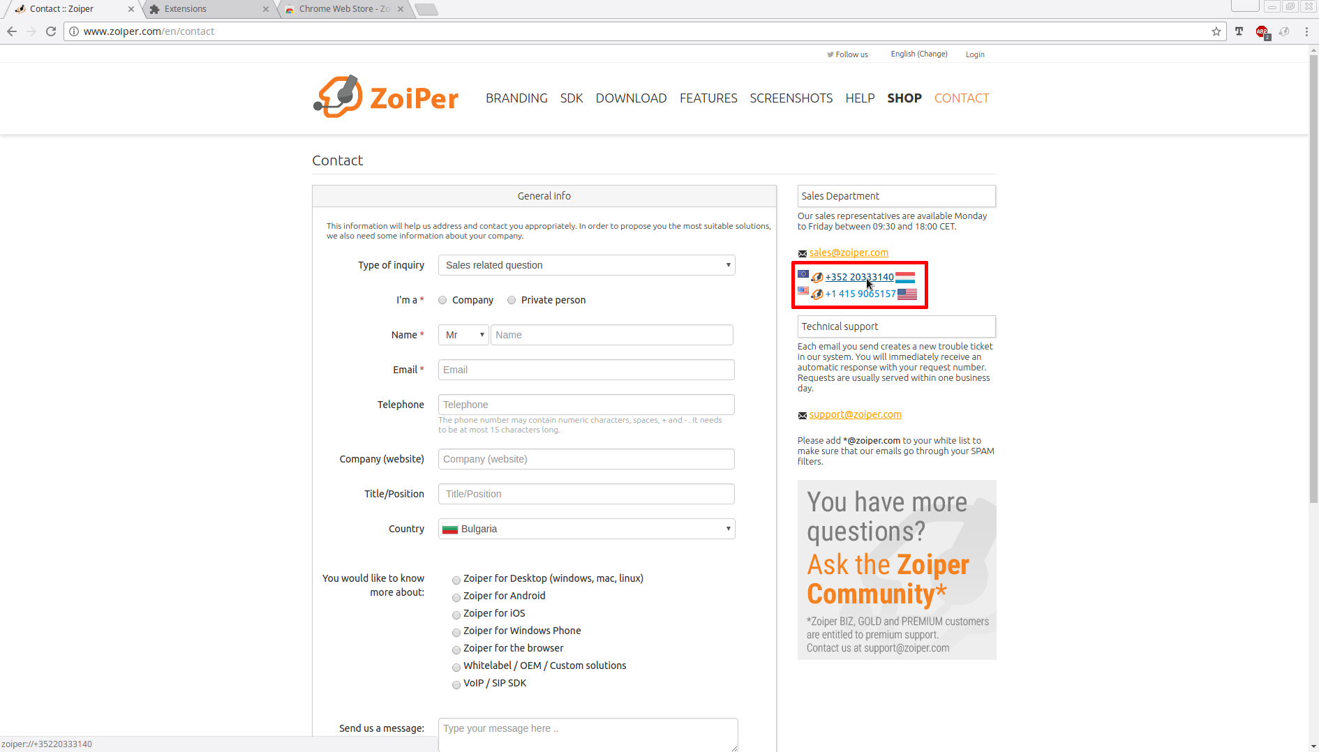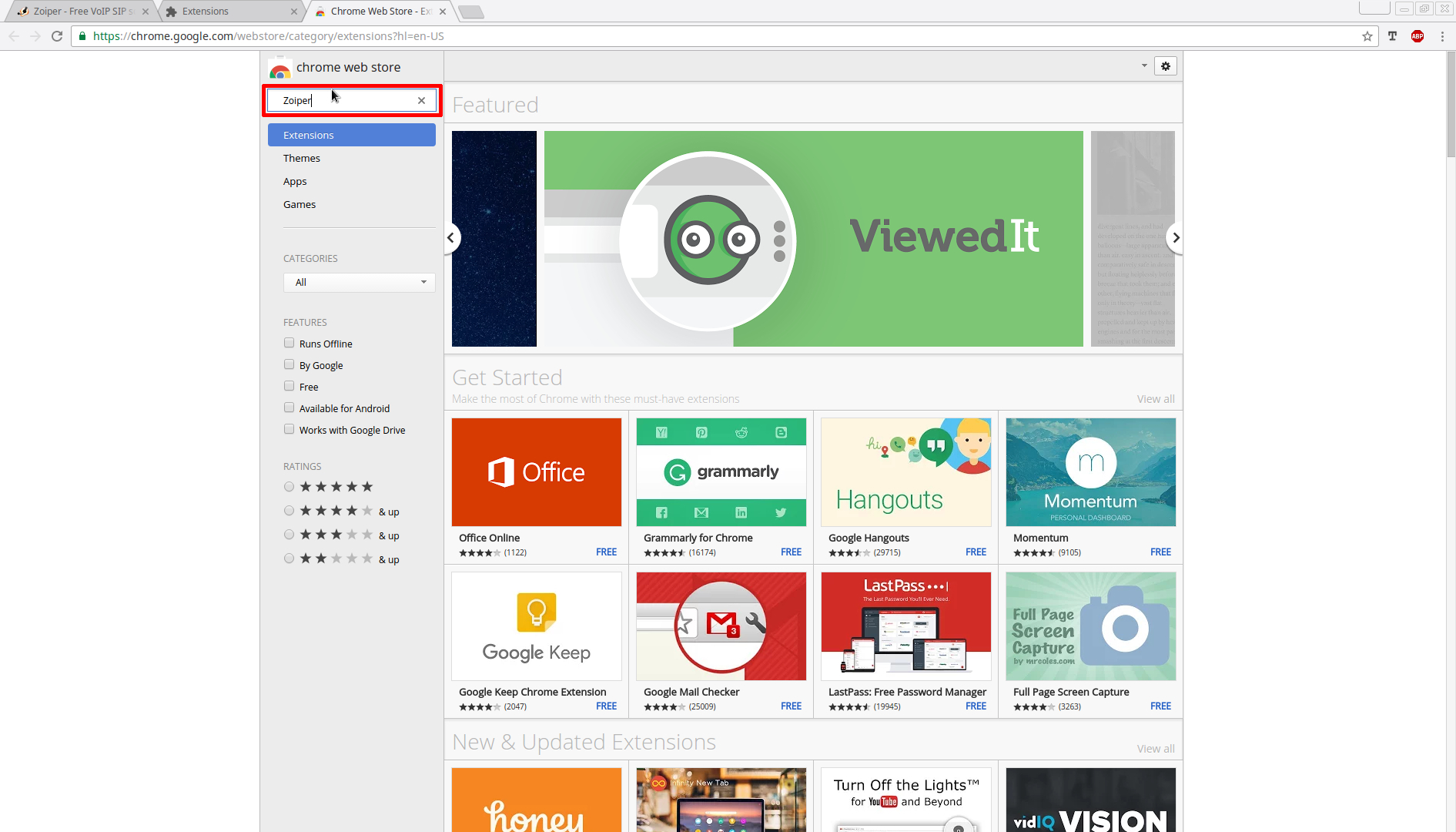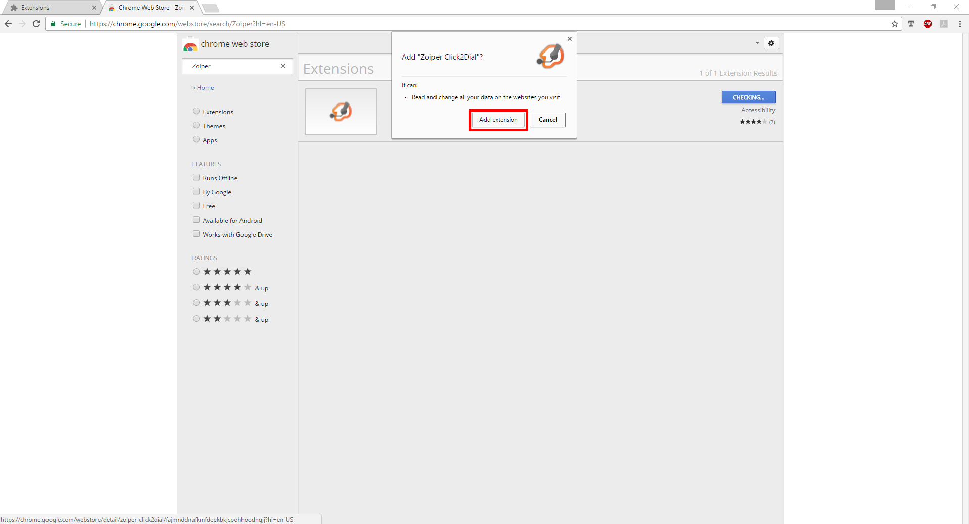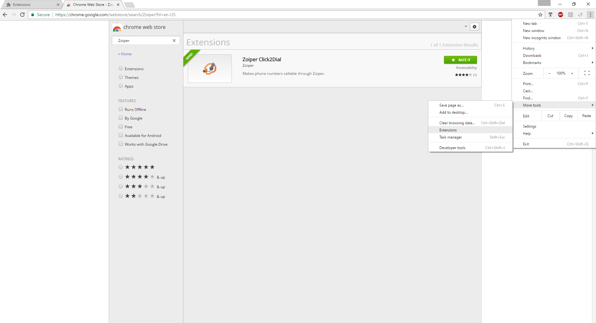 For your convenience, you can visit the Google Chrome extension store and search for Zoiper or directly install the Zoiper Click 2 Dial extension.