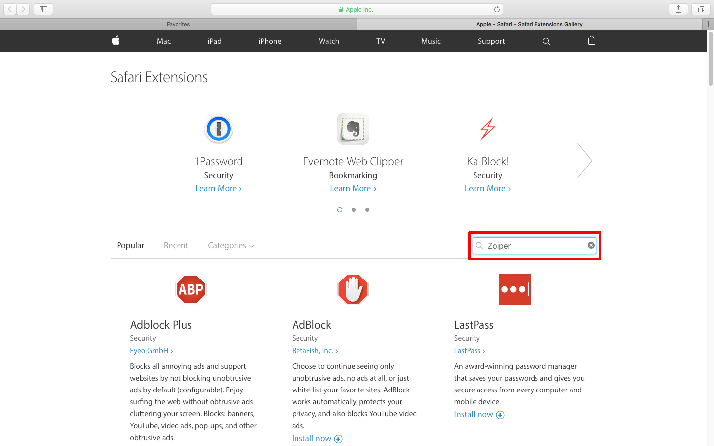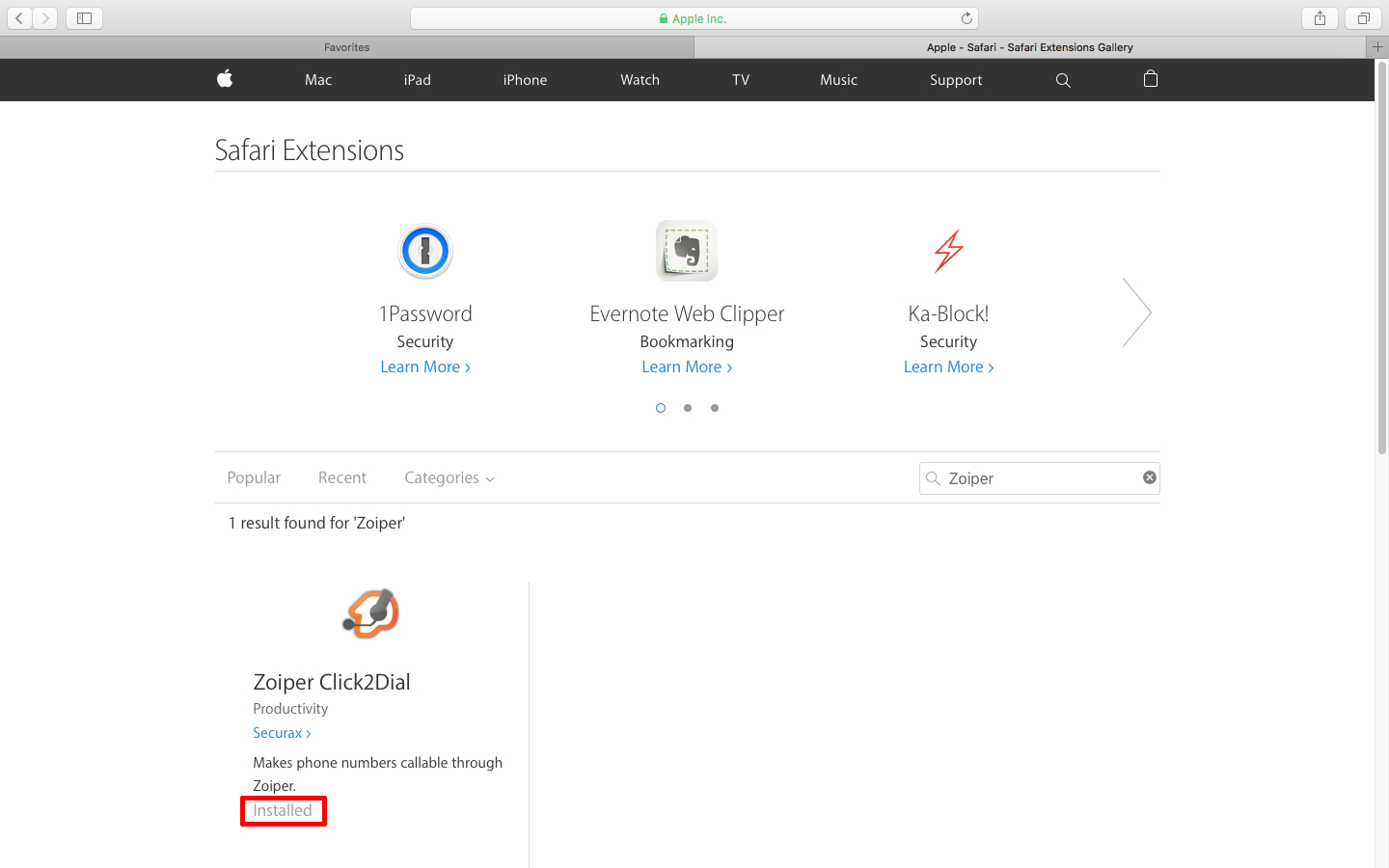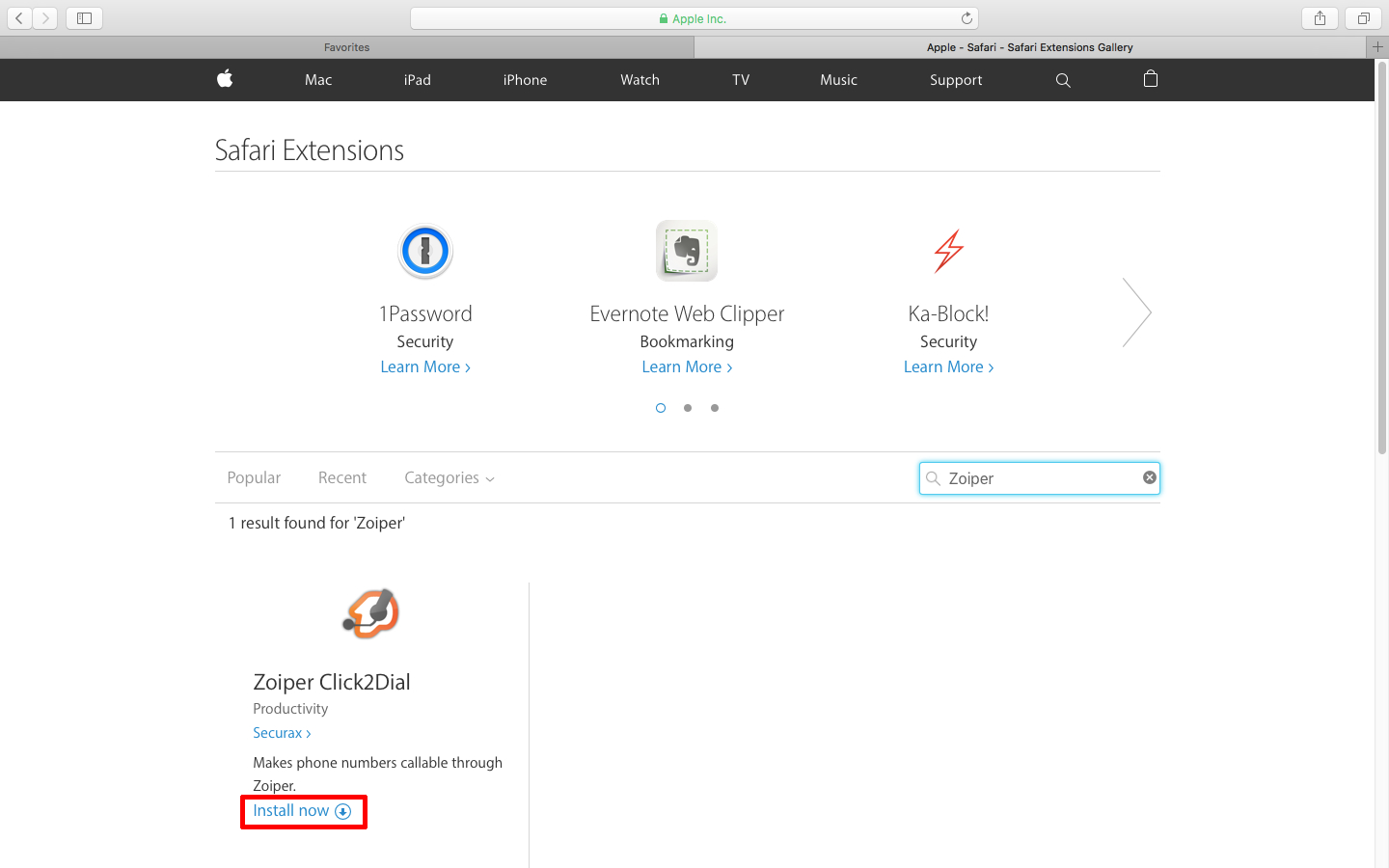 4. In the search results below, you will find the Zoiper Click2Dial extension. Click "Install now".