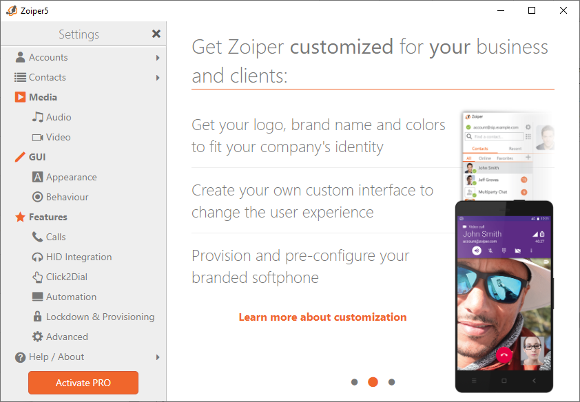 If you have clicked Continue as a Free user at any point and Zoiper 5 has been started, you can still activate, by going to Settings > and click on the Activate PRO: