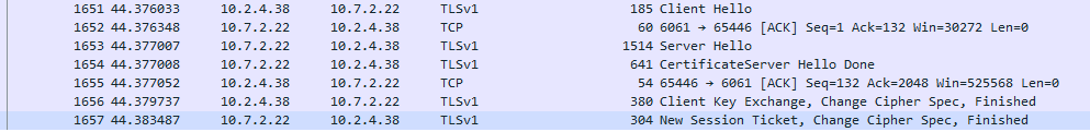 Now, Wireshark cannot decode the capture without the SSL handshake between the phone and the server included in the capture. The handshake looks like this: