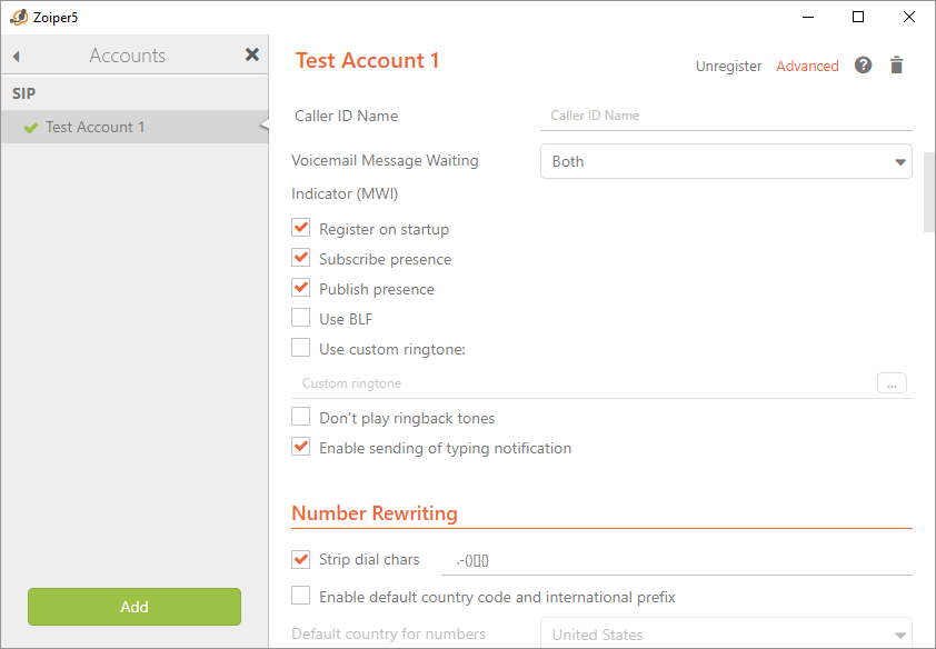 Custom option per SIP account in Zoiper 5 PRO.