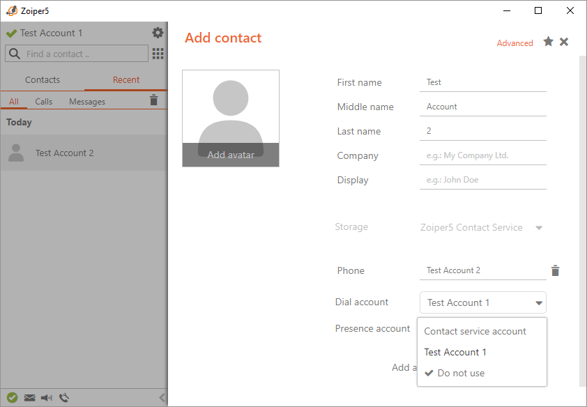 However, if the said (still not added) contact sends you a message, the Smart Chat & Presence feature in Zoiper 5 PRO will automatically select the necessary Phone type along with Presence account: