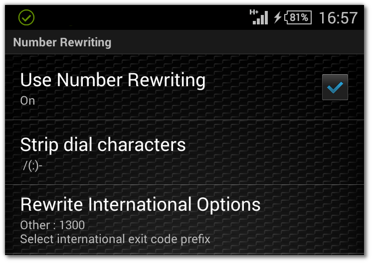 Run your Zoiper for Android, then go to Config and select Number Rewriting.