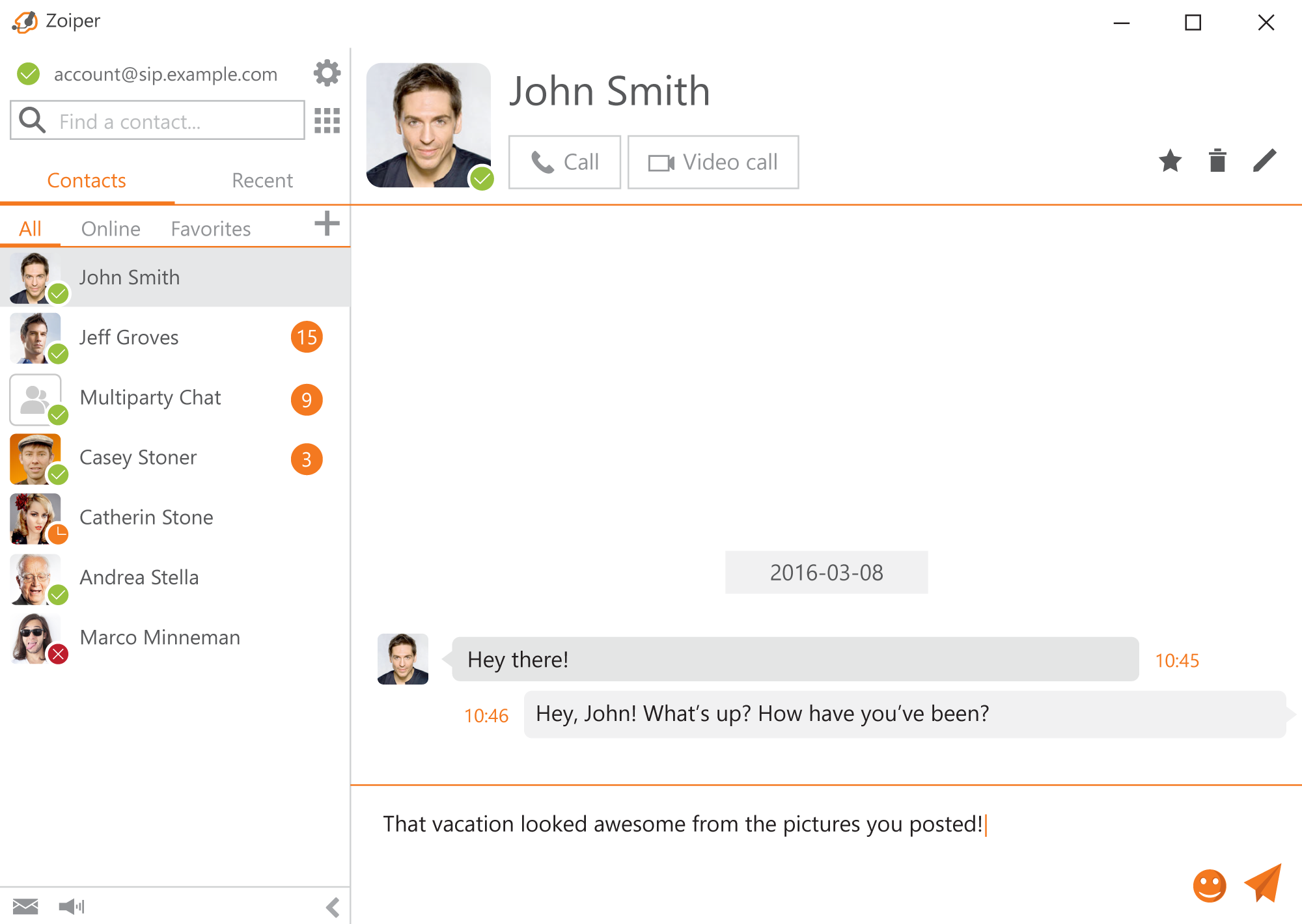 Features, specific for the software client or the operator’s service individually, are now standardized within Zoiper – preconditions, MSRP group chat and file transfer, SMS over IP.