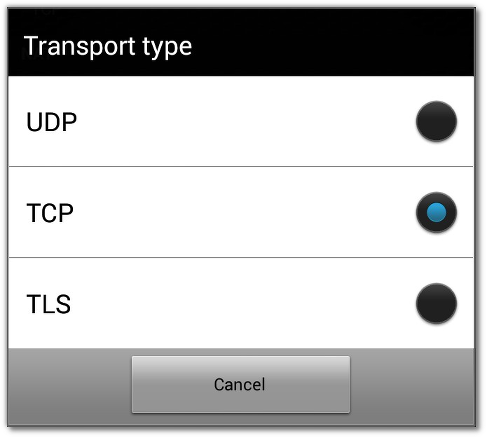 To change the transport type for your account you need to run Zoiper for Android, go to Config, then go to Accounts, select your account and scroll down to Network Settings. Change the transport type to UDP, TLS or TCP, according to your provider's recommendation.