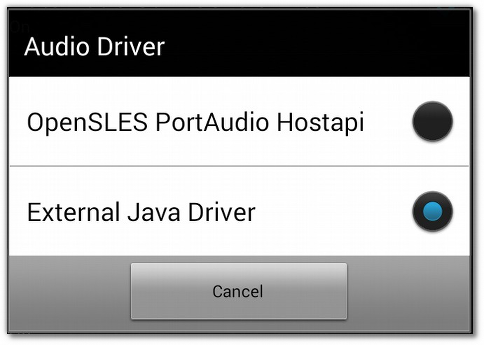 Start your Zoiper for Android, go to Config, select Audio and scroll to the bottom of the page. Change the Audio Driver to “External Java Driver”.