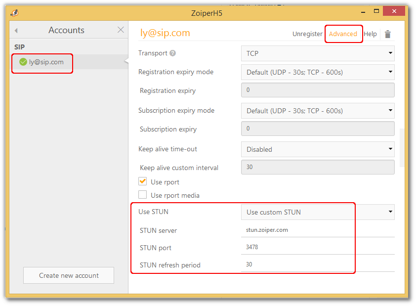 To configure the STUN setting in Zoiper 5, open Configuration -> Accounts -> select your account -> enable Advanced settings -> scroll down to STUN.