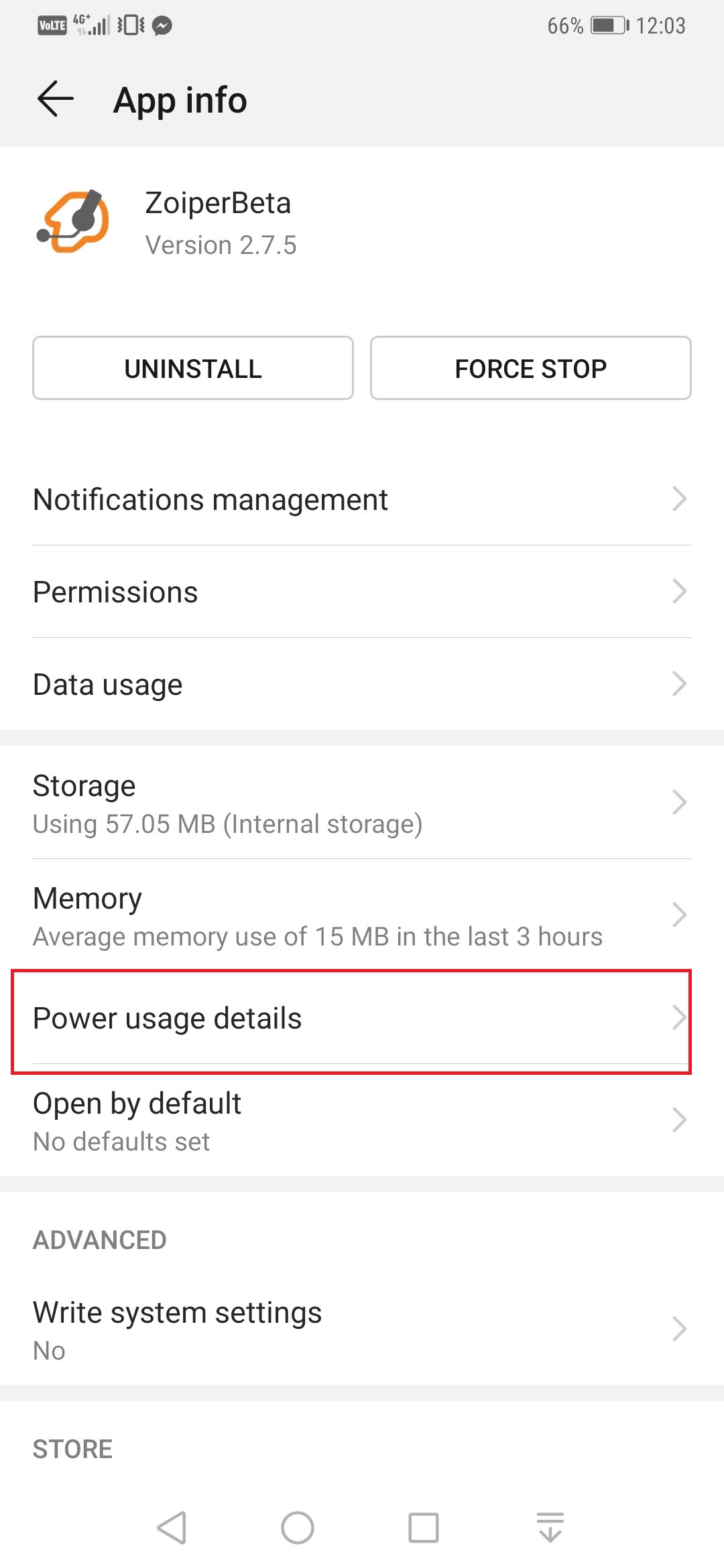 Open Android Settings - Apps - Apps - Zoiper