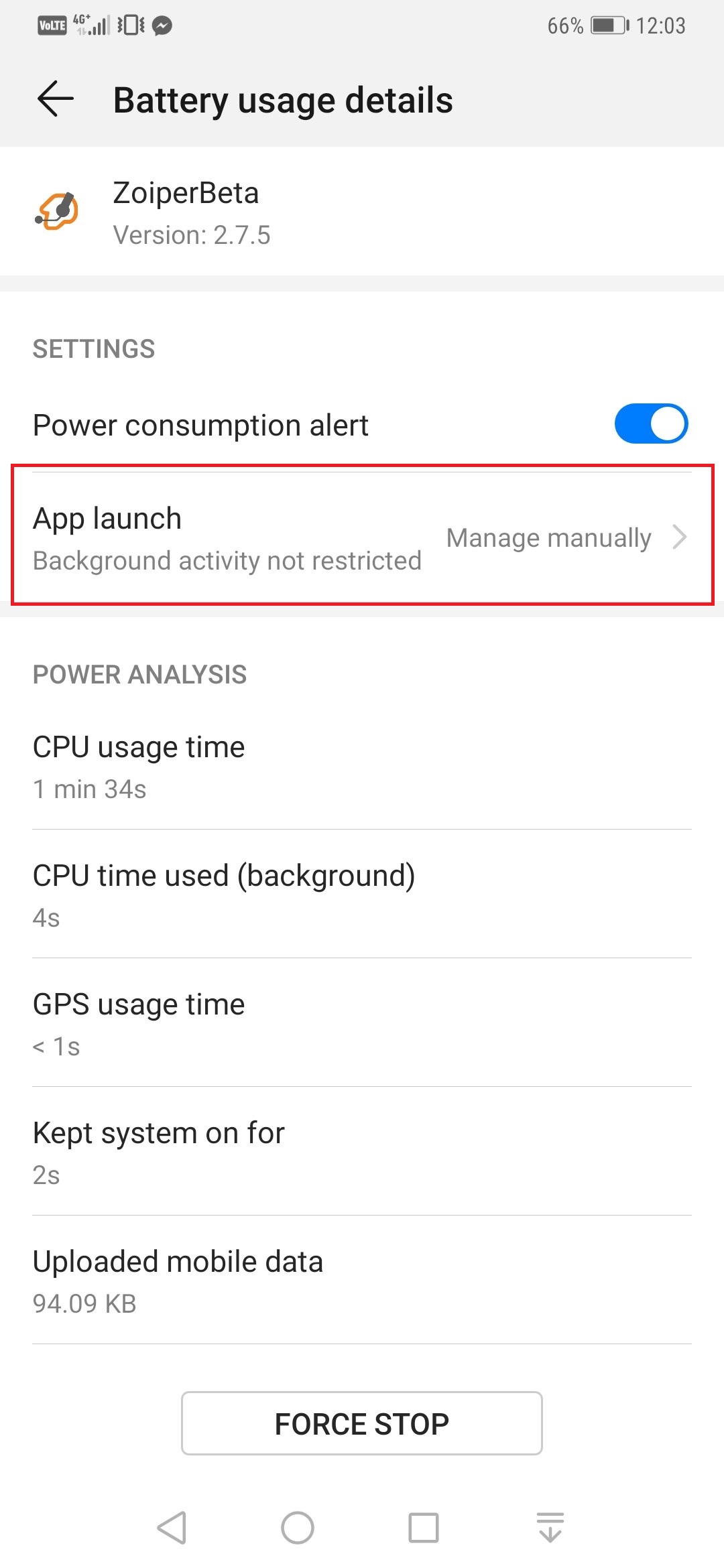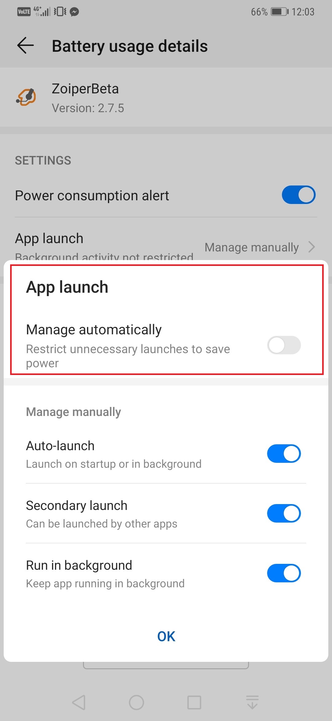 With Huawei devices and Android above version 8+, to allow Zoiper to work on background even when the PUSH service is enabled, you need to do the following: